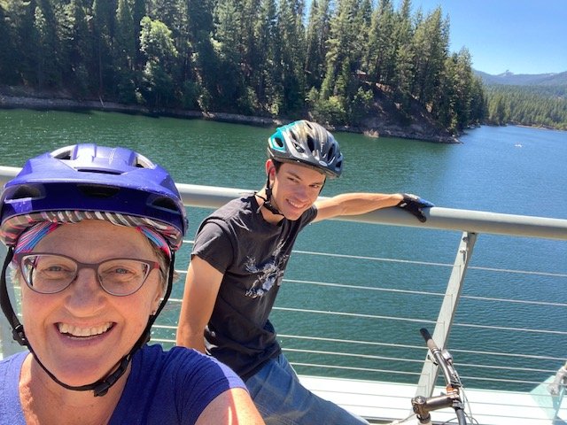 That first night was a no-host dinner in the town of Shasta; with no car, we weren’t sure how we would get there but luck smiled on us: a cab driver (!) had driven into the park to get a soft-serve ice cream at the little store (they are really good) and she was willing to drop us off at the restaurant in town on her way to her next fare. We jumped in with no time to change and made it in time to get seated and served with the rest of the family. That first night is always a little crazy - the restaurant puts the group, which is large, in its own room and it’s loud - most everyone hasn’t seen each other since the year previous. Our unflappable waitress was able to get us all drinks and food in good order and no mistakes were made. The next challenge was getting back to the campground but we figured the odds were in our favor with everyone else heading the same way. It was more challenging than we expected as most folks had piled in and filled cars, but luck was with us again when two cousins emptied their back seat into the bed of a pickup and made room for the three of us.